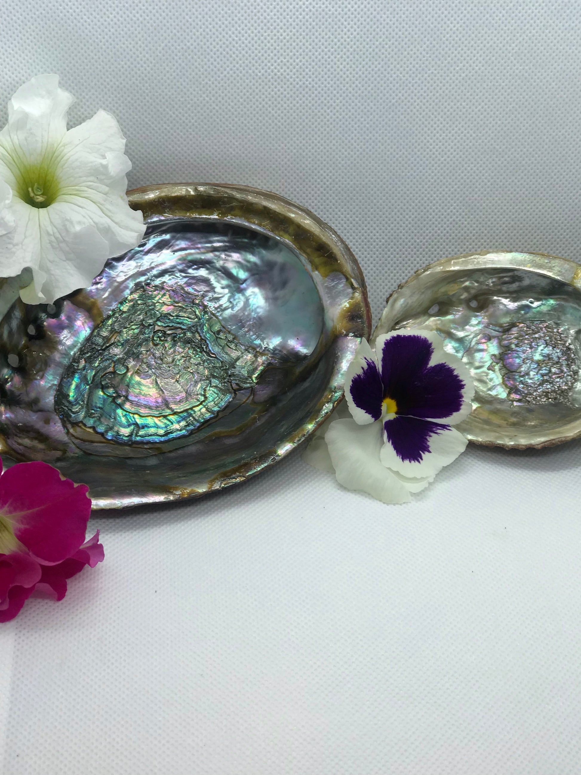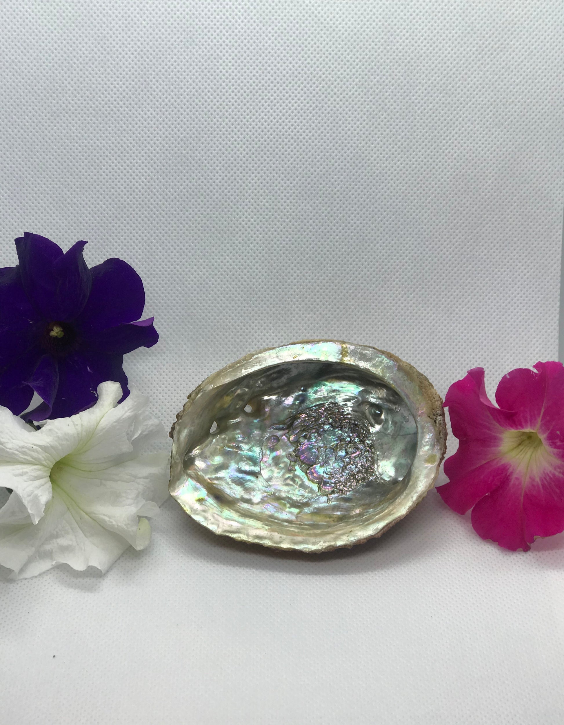 Abalone shells carry healing properties of energy and emotional balance. They are especially helpful for those going through emotional turmoil. The shells provides a layer of protection that lifts the spirit with confidence to view situations from a new, more understanding perspective. Abalone is thought to have a divine energy, and using it with sage in the act of space clearing invokes the spirit of the ocean and uses your highest chakras as a conduit to the divine realm.